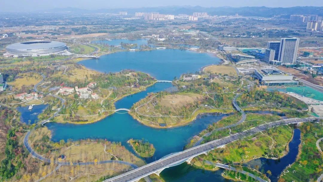 成都地處平原,缺少大江大河,亦無高峰山巔,山與水是這座城市是不可多得的生態(tài)景觀資源。經(jīng)過兩年緊張建設(shè),如今的東安湖“一湖一環(huán)、七島十二景”,巴蜀山水畫卷的生態(tài)格局已經(jīng)全面呈現(xiàn)。