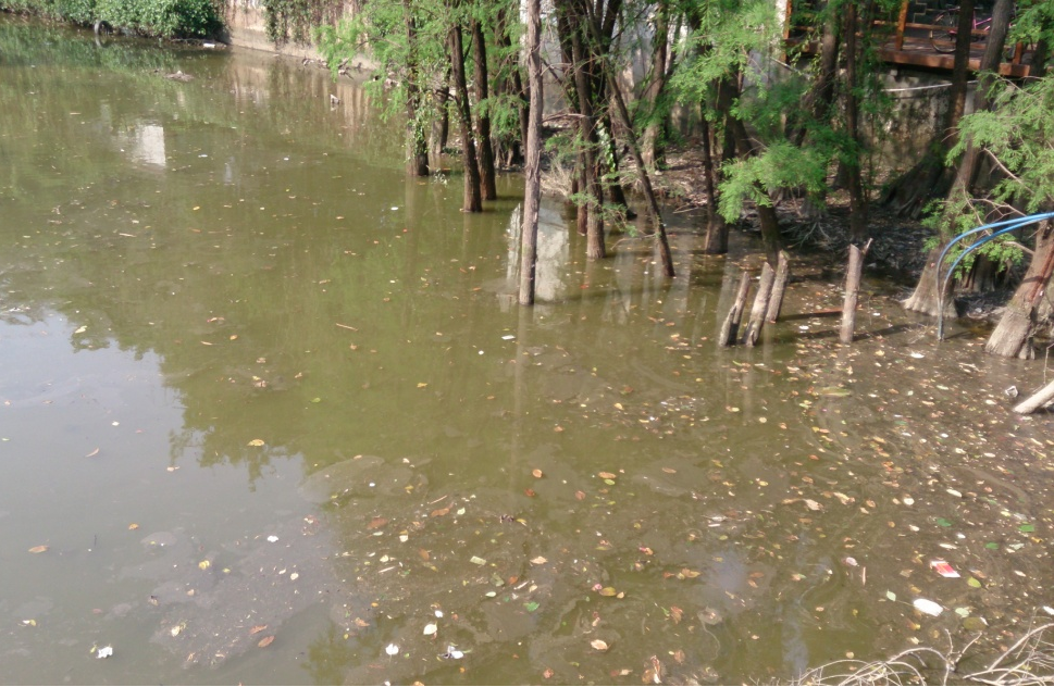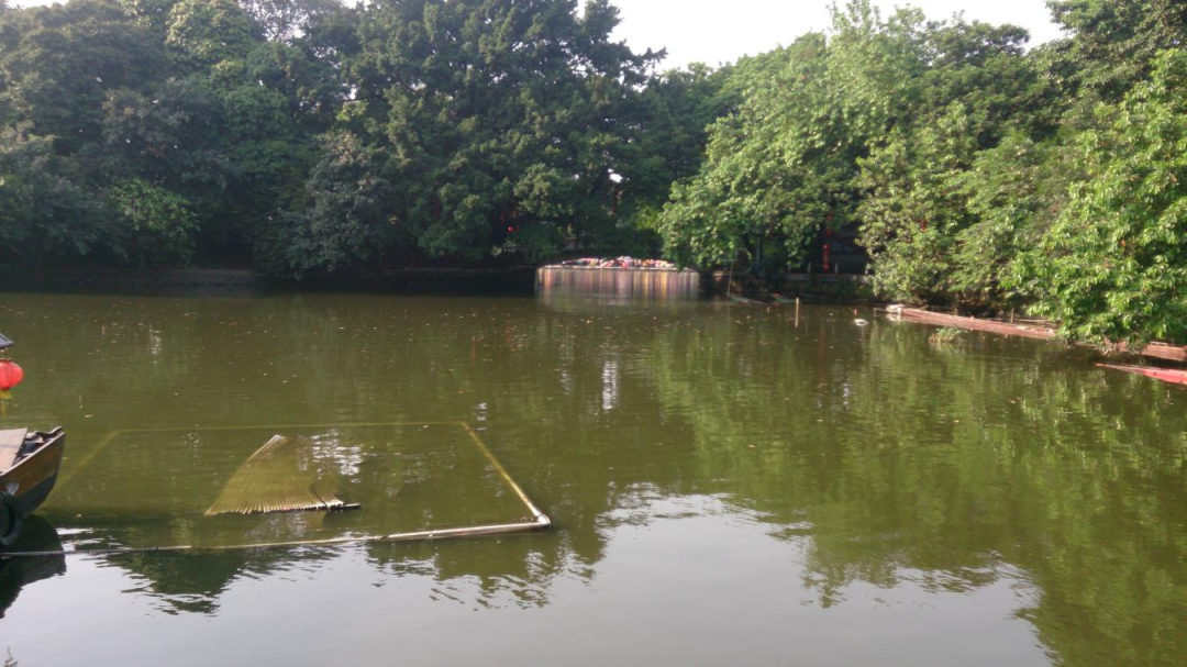 周邊商業活動污水排入,水體油膜聚集、散發異味,水質一度惡化為劣五類水,整體景觀效果不佳。