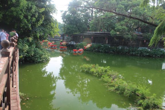 園區內綠草如茵,佳木蔥籠,曲橋臥波,層臺疊翠,荔灣八景詮釋著廣州的西關風情,重現古羊城的“荔灣漁唱”,貽水石橋,湖渡輝映,好一派南國風光。
